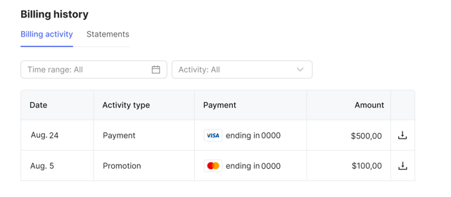 Tip: We recommend setting an amount that comfortably covers your average campaign spend for at least several days. This helps reduce the number of charges and keeps your balance stable.